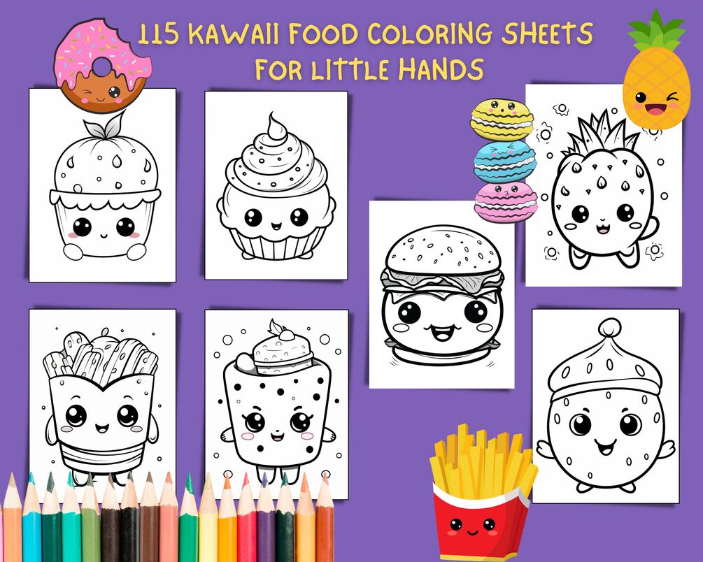 115 Printable Kawaii Food coloring pages for kids, toddler and preschoolers. 115 Easy and Simple Kawaii Coloring pages for Preschool , Kindergarten and Homeschooling. Perfect for little hands to help them develop their pincer grip and color yummy Kawaii Food pages, making learning and coloring fun.